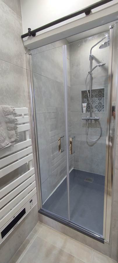 La salle de bain avec douche et lavabo, ainsi qu'un WC séparé, viennent compléter ce logement pensé pour votre confort.